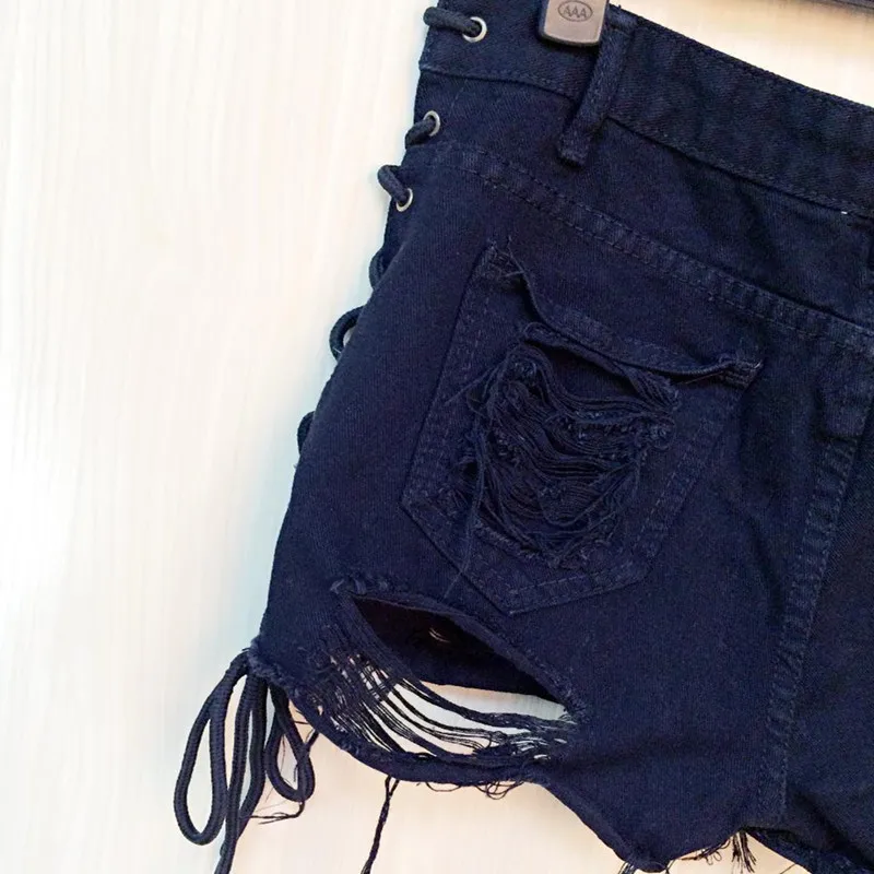 buy Danjeaner Sexy Ripped Hole Fringe Black Denim Shorts Women Lace Up Casual Pocket Jeans Shorts 2018